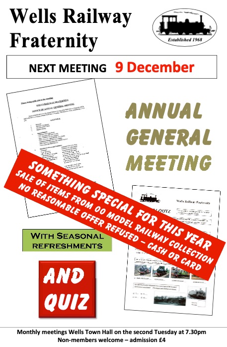 At a place where both could remember the sounds of the locomotives working hard to lift trains over the Mendip Hills. The first meeting of the new group was held at “Hartland” the home of Jock Ferguson in West Horrington on 5 March 1968 followed by three further meetings in that year. These were held in the rooms of Canon Bailey in the Wells Deanery. The first AGM was held in March 1969 when the subscription was set at 10 shillings (50p).